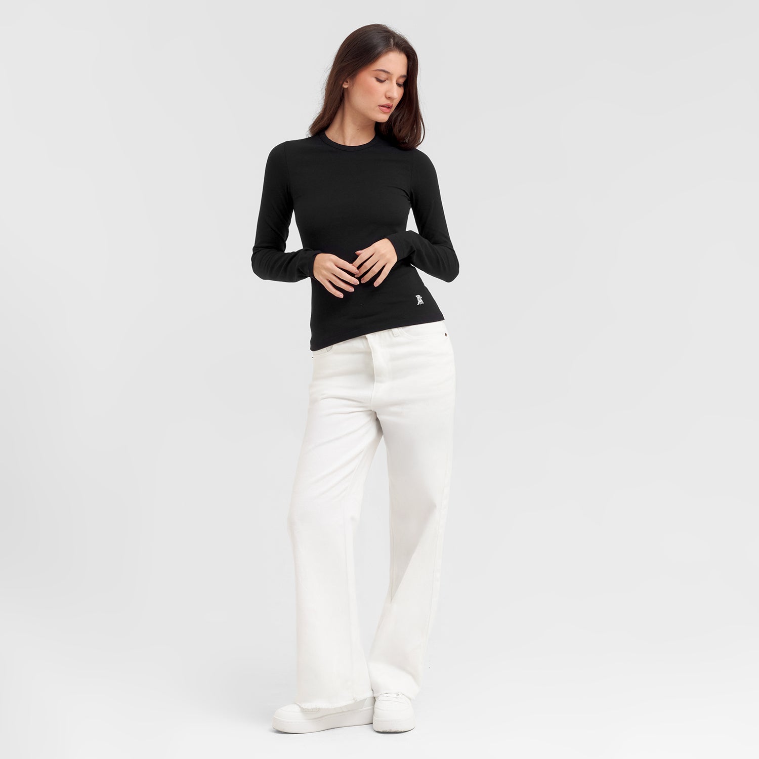 Mejora tu look con nuestra camiseta de manga larga para mujer, versátil y atemporal. Su corte entallado realza la figura, convirtiéndola en la prenda básica perfecta para tu armario.